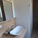 The property comprises a sitting area featuring a sofa set, and modern comforts like a TV set. A bathroom includes a walk-in shower and a separate toilet, as well as dryers and bath sheets.